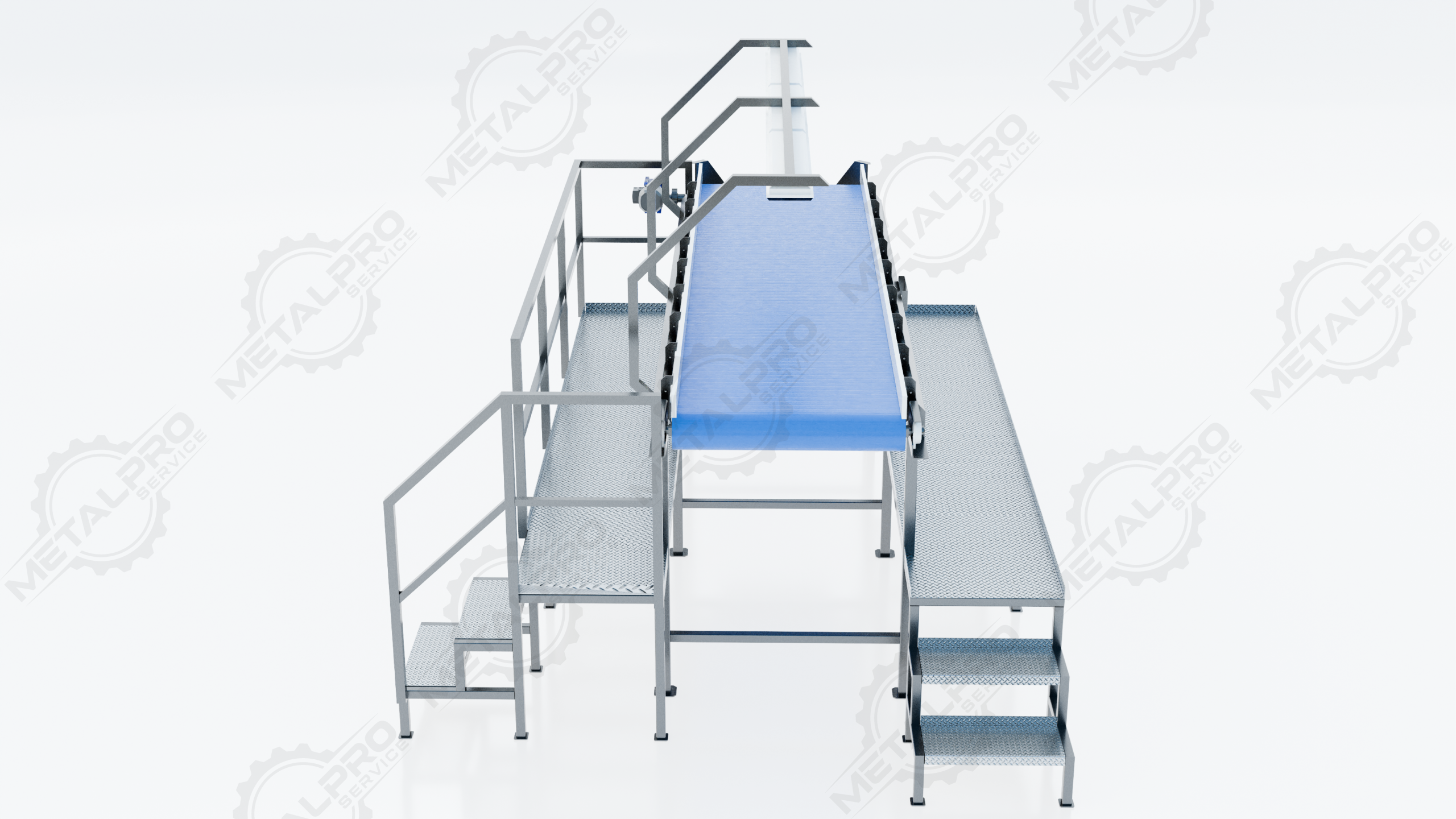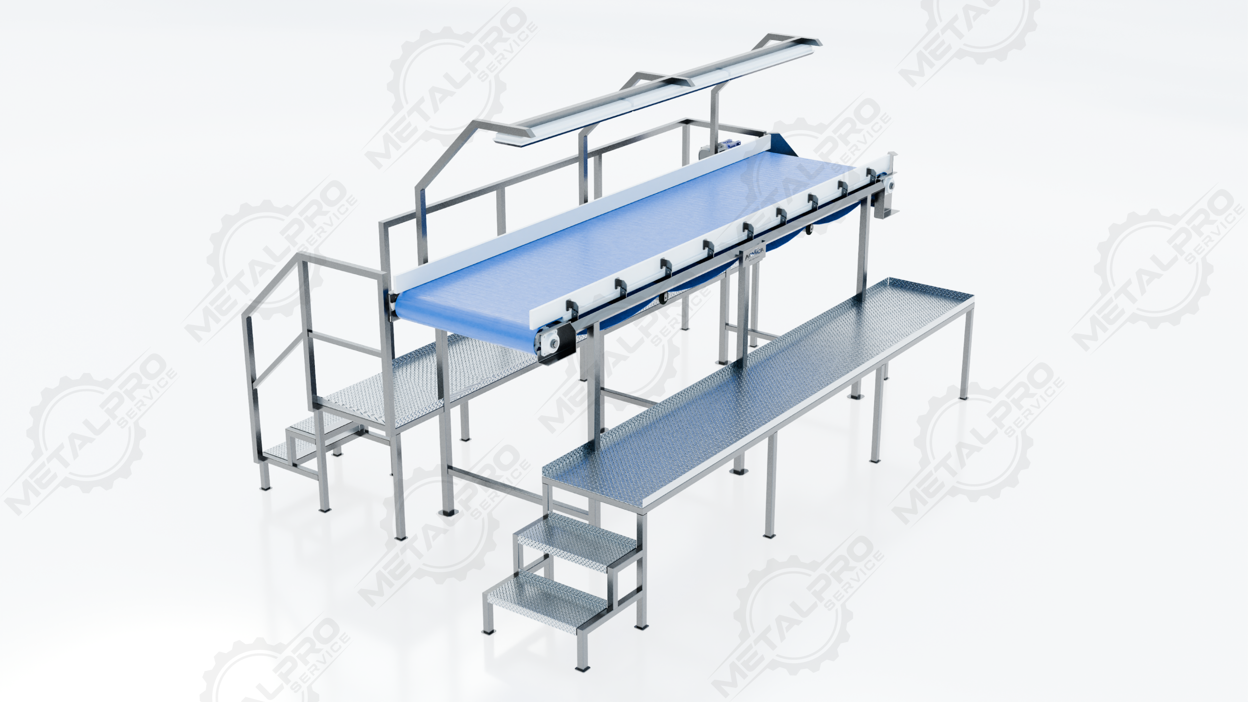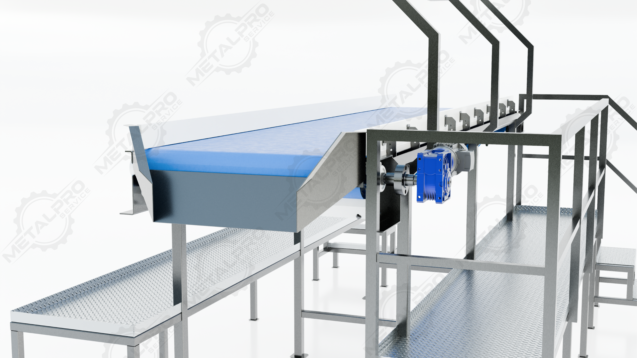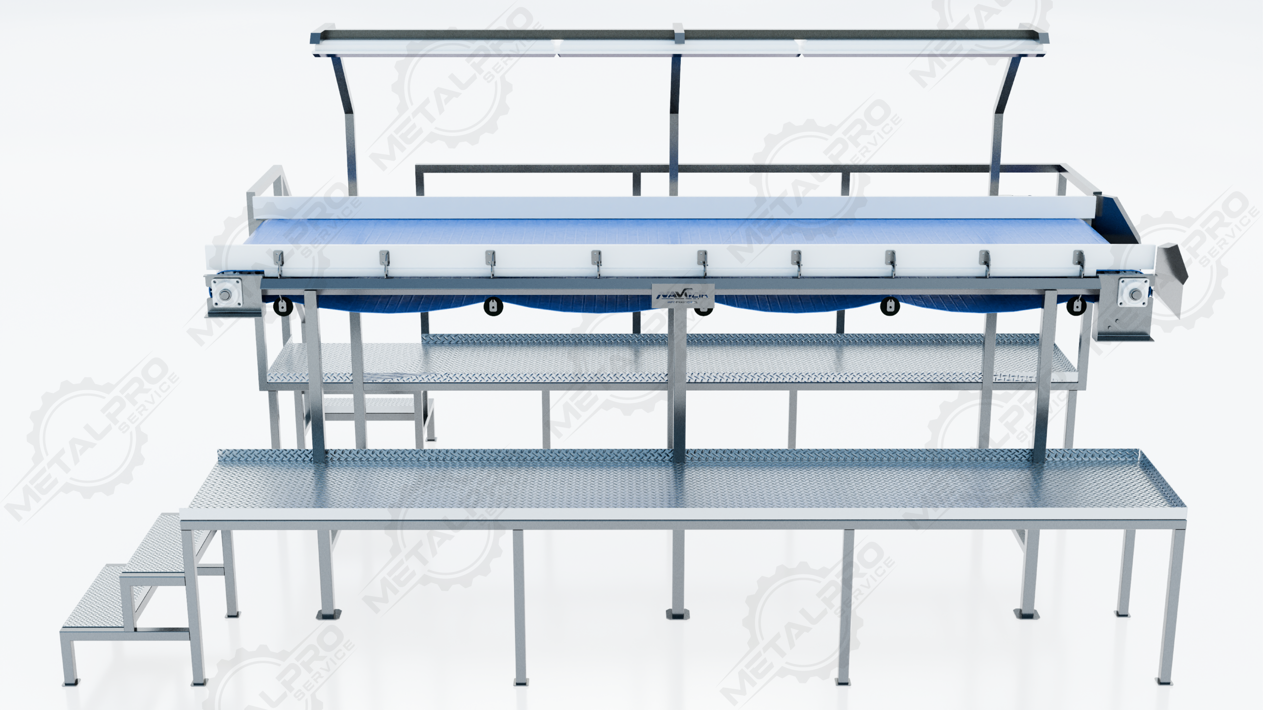 Sistema de transporte industrial diseñado para inspección visual y control de calidad en línea.
