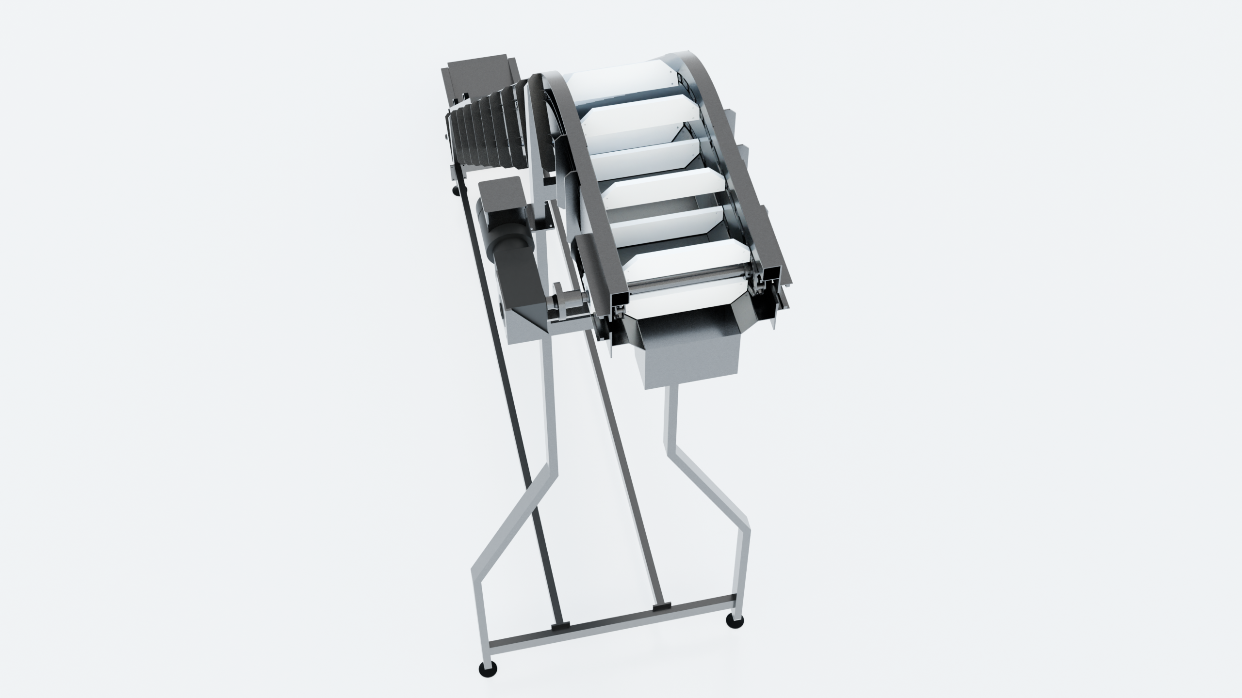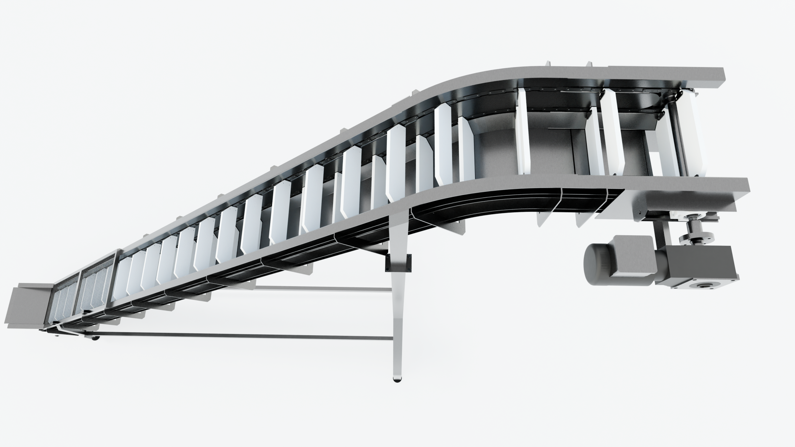 Transportadores de cangilones (buckets) montados sobre una cadena de arrastre.
