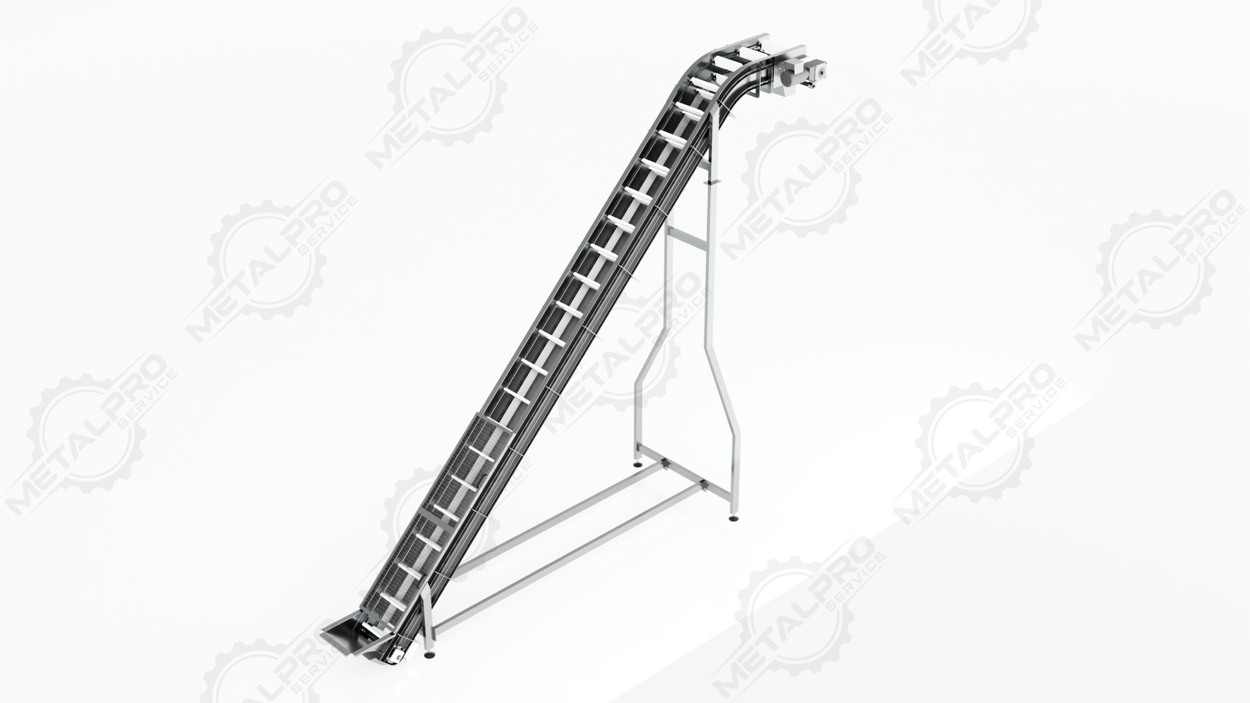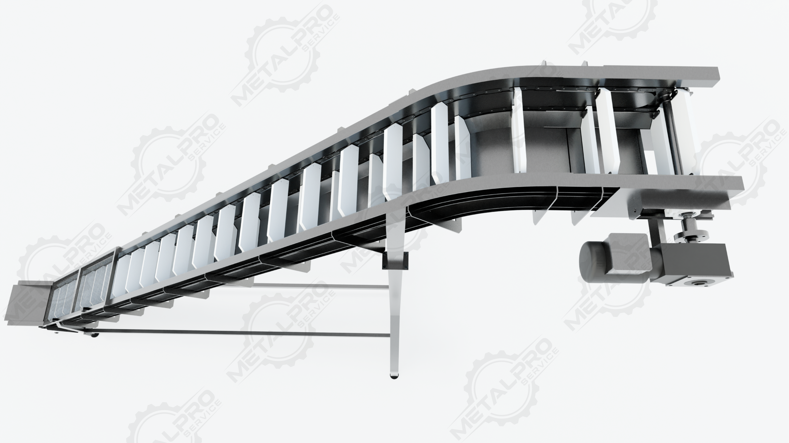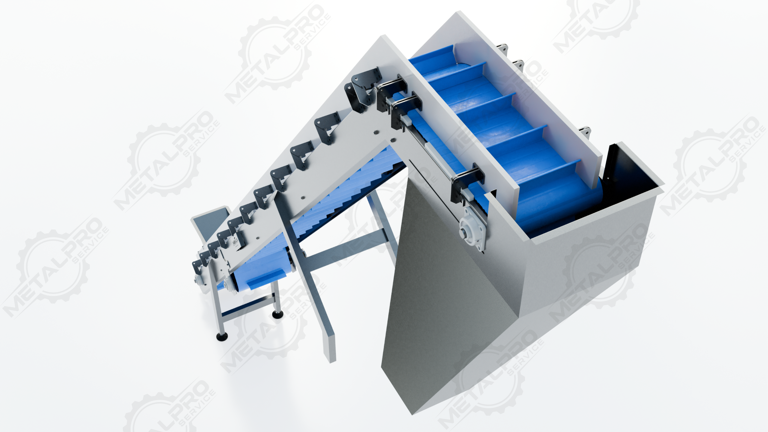 Cangilones (buckets) sobre cadena de arrastre.