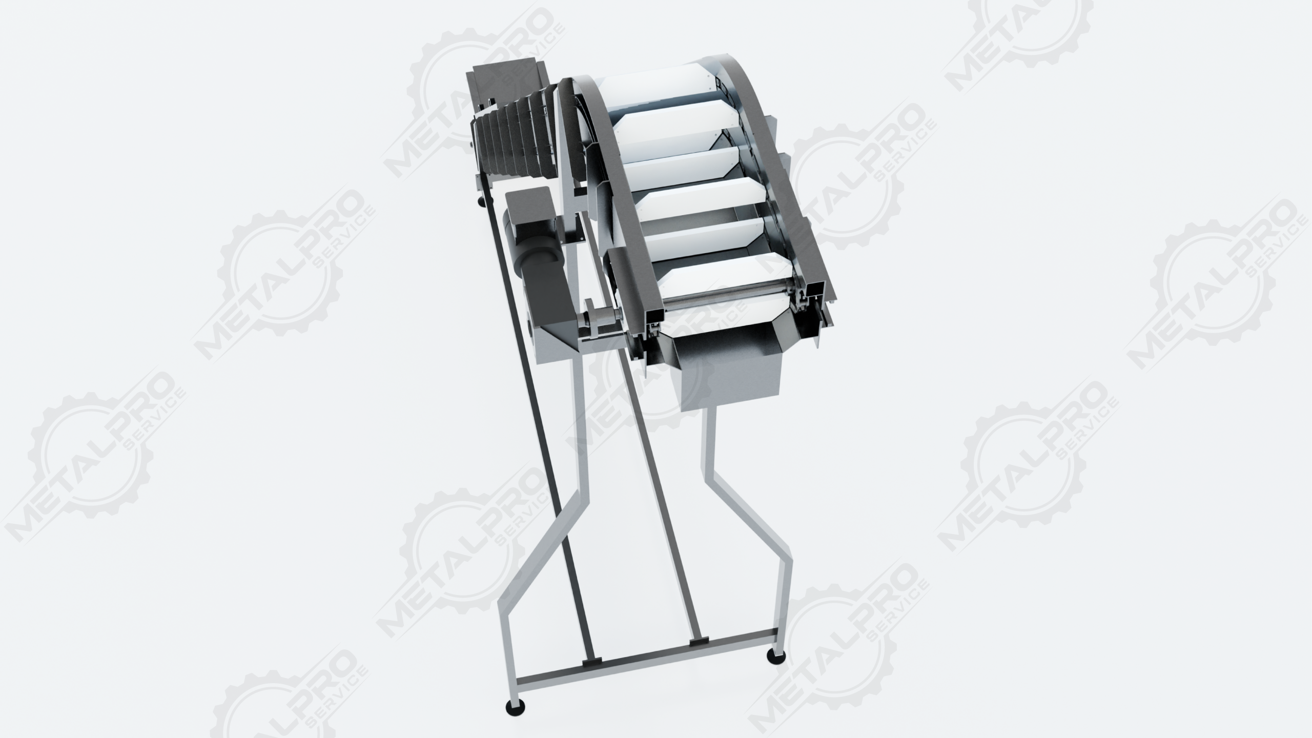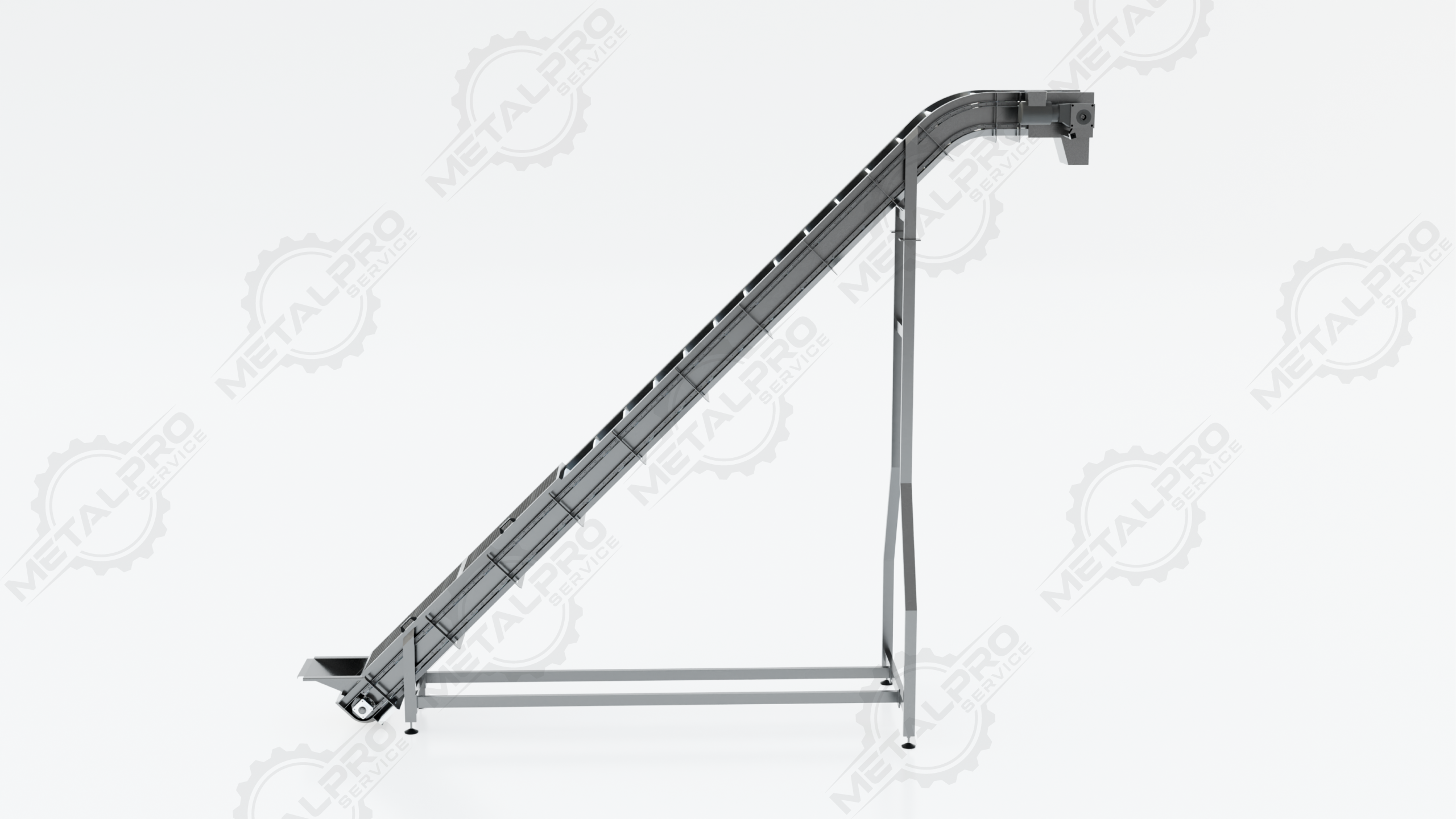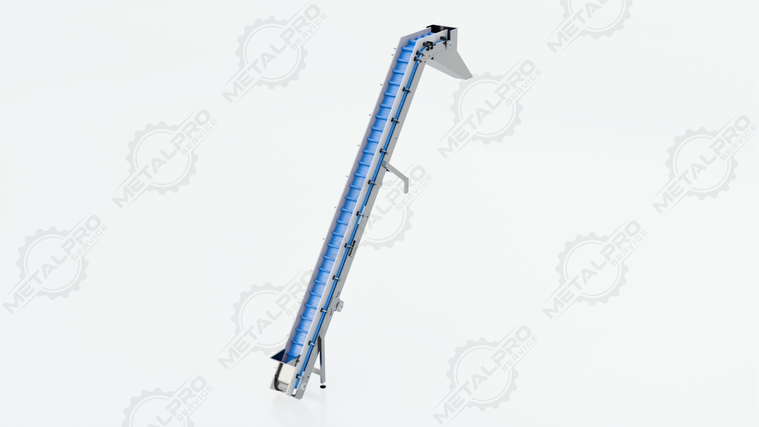 Cangilones (buckets) sobre cadena de arrastre.