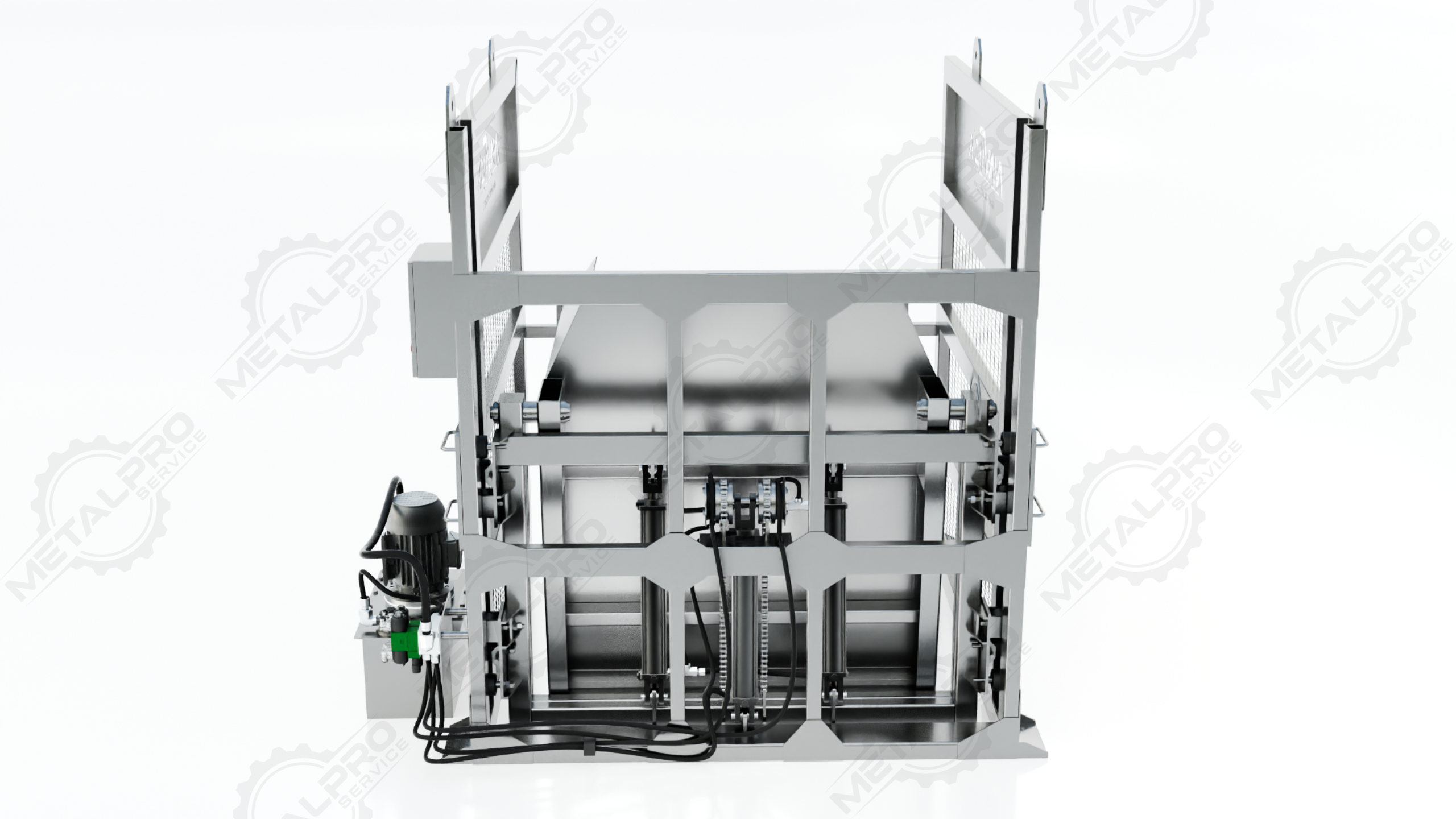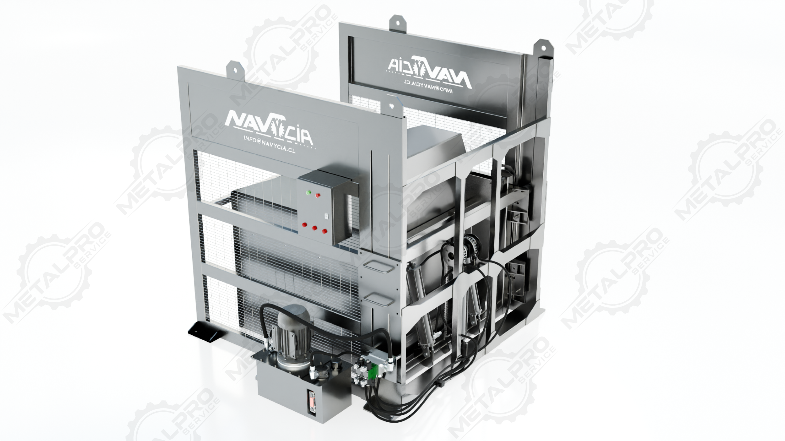 • Equipo hidráulico industrial para volcado controlado de bins de gran capacidad.